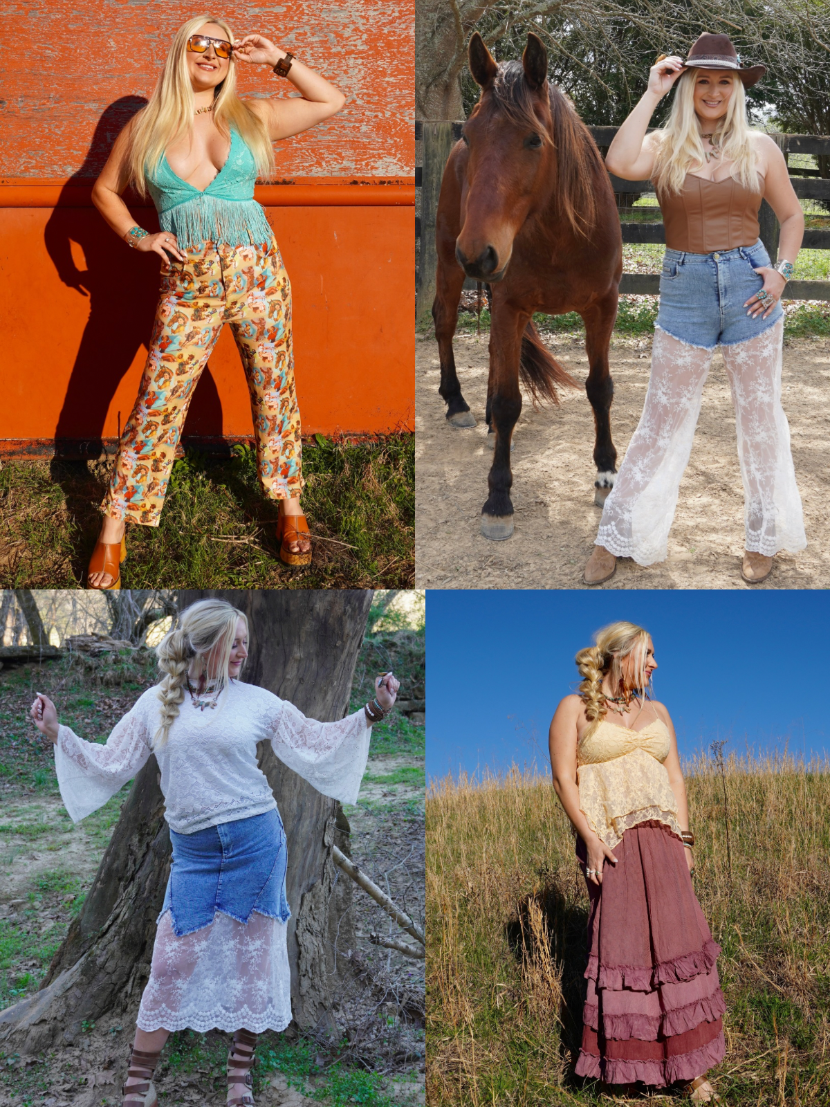 Every piece is hand-picked with intention, inspired by a mix of vintage vibes, boho freedom and Western grit. Whether you're headed to a rodeo, a concert or just living your everyday life- I want you to feel like your most unstoppable self.