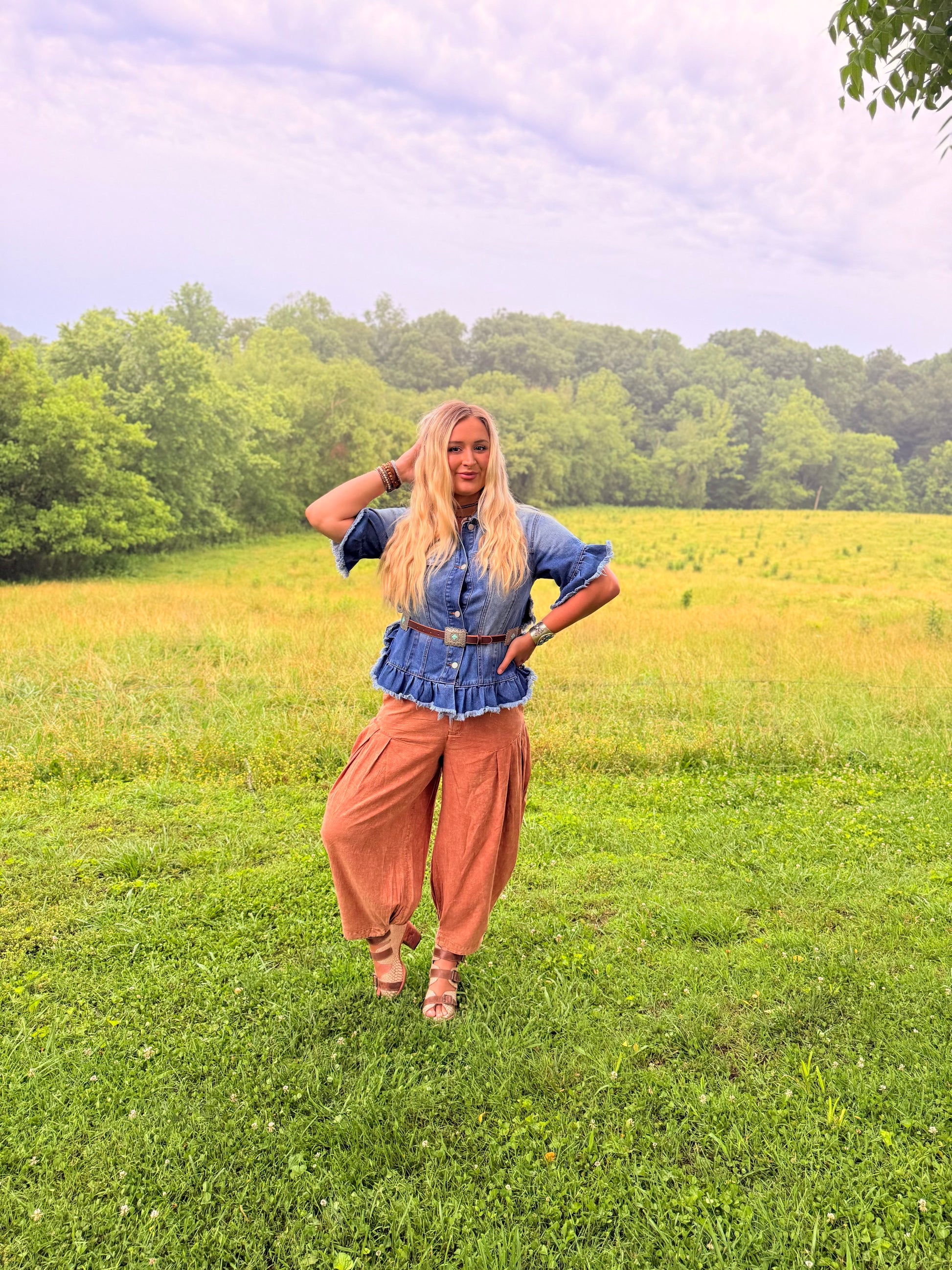 Ruffled Short Sleeve Denim Jacket