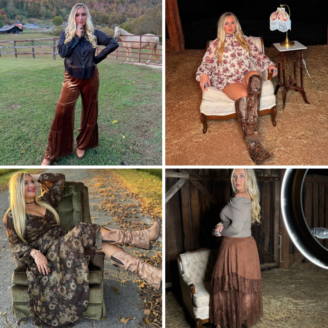 Every piece is hand-picked with intention, inspired by a mix of vintage vibes, boho freedom and Western grit. Whether you're headed to a rodeo, a concert or just living your everyday life- I want you to feel like your most unstoppable self.